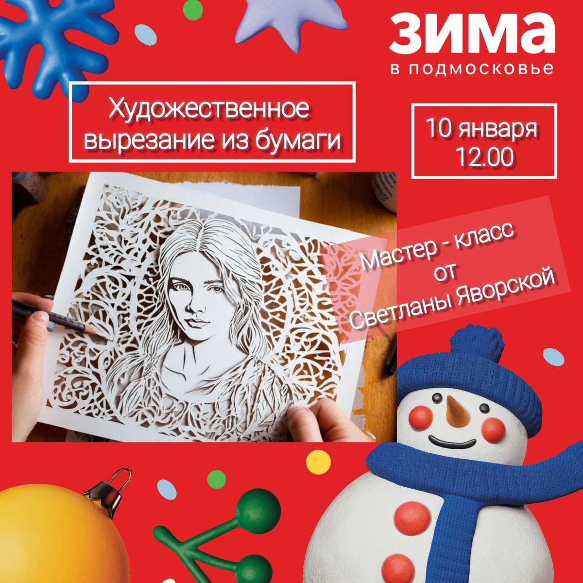 ✨ Приглашаем окунуться в магию зимнего творчества вместе с Домодедовским музеем! ❄️ Вас ждёт увлекательный мастер-класс по художественному вырезанию из бумаги от мастера Светланы Яворской. Это искусство — невероятная игра света и теней, виртуозное переплетение узоров и деталей, которое рождается из простого листа бумаги. ✨ Подарите себе час вдохновения, создайте настоящие шедевры своими руками и почувствуйте тепло творчества даже в самый холодный зимний день. Идеально для всех, кто хочет открыть в себе художника и вдохновиться красотой! 📆 10.01.2026🕒12:00 🏢 Комитет по культуре, делам молодёжи и спорту 📍 Домодедово, Советская, 19 к1 💰 Вход свободный❗️ ✅ Мероприятия Домодедово https://dzen.ru/id/66f10385cc4c5a16f7b5fb02 http://vk.com/domodedovo_events http://dzen.ru/domodedovo_events