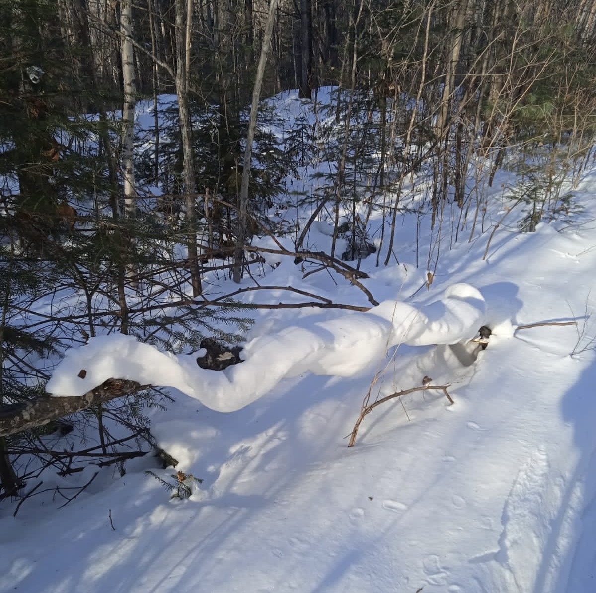 Однажды мы с подругой выбрались в зимний групповой поход по тайге с завершением его у строящегося храма. Шли по просёлочным дорогам и свежепроложенным тропам, подмечали интересное. То шалаш, то снежные композиции..