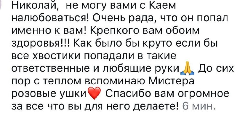 Вернее, расскажут девушки, которые его спасли, прежде, чем мы его забрали. Первое видео - как его нашла и спасла девушка в Сочи, после того, как, вероятно, его сбила машина Второй скрин - девушка, у которой он жил на передержке в Москве Третий скрин - история от девушки, которая сняла видео в начале поста. Какая цепочка замечательных людей ❤️ и как же я благодарен, что есть такие чудесны, добрые и отзывчивые люди в этом мире, как они ❤️❤️❤️ Благодарен, что их эмпатия и забота, позволяет мне сегодня проживать счастливую жизнь с моими малышами