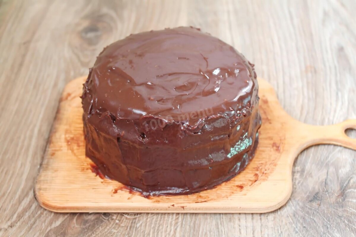 8. Смазываем либо сметанным кремом, либо вареньем. Сверху укладываем второй корж.