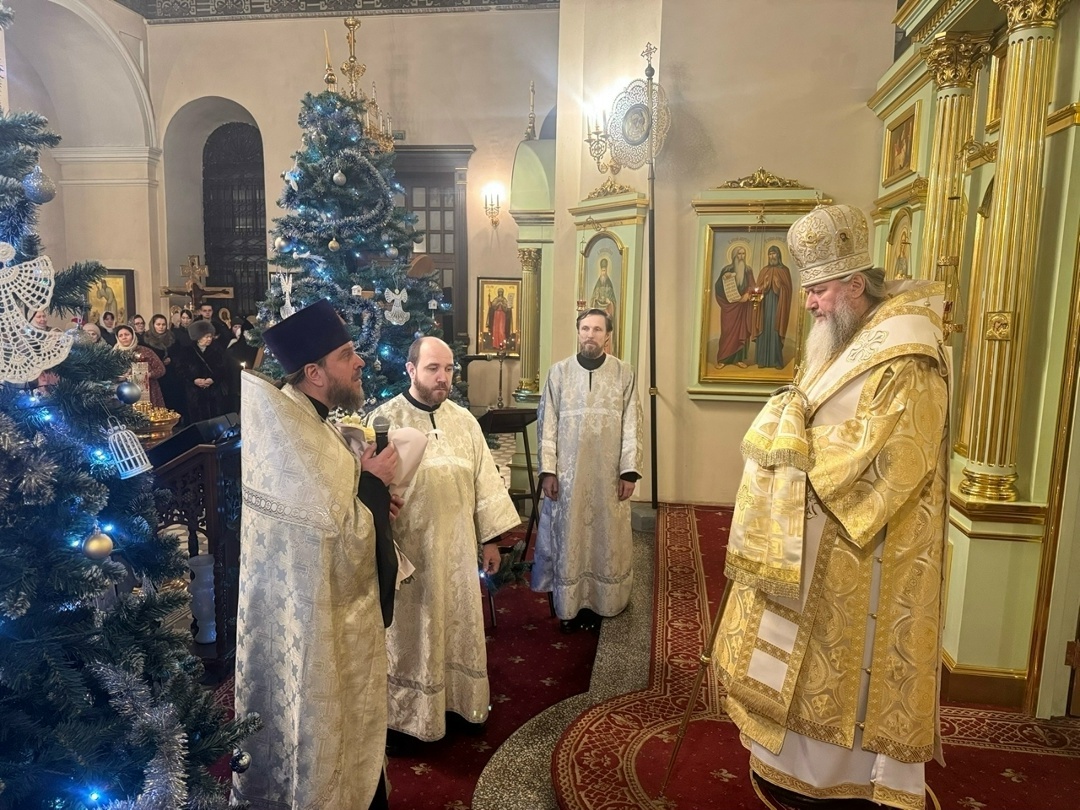 инешме Вечером 7 января епископ Кинешемский и Палехский Иларион в сослужении духовенства Кинешемской епархии совершил Великую вечерню Рождества Христова. За богослужением он наградил правом ношения двойного ораря диакона Андрея Баранова. По отпусте вечерни духовник епархии протоиерей Максим Верещак от лица духовенства поздравил архипастыря с праздником Рождества Христова. Учащиеся Православной школы святого благоверного князя Александра Невского также поздравили епископа Илариона и исполнили песнопения праздника. По материалам сайта Кинешемской епархии
