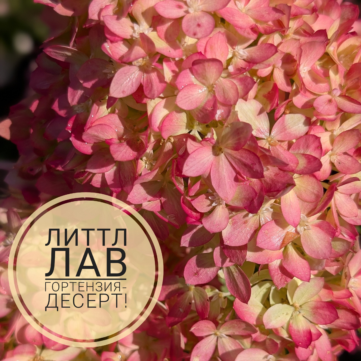 Стартует сорт в мягком лаймовом цвете. По мере роспуска шапки светлеют и становятся сливочно-белыми с лаймовым подтоном. Следом сливочная составляющая цвета начинает углубляться, выводя оттенок в откровенный насыщенный бежевый - абсолютно уникальный цвет для метельчатой гортензии! Да, в оттенке присутствует характерный лаймовый подтон, вместе с этим бежевая насыщенность превалирует, и шапки становятся цвета мороженого крем-брюле! А потом начинается магия - по лепесткам уверенными всполохами начинает равномерно разливаться яркий вишневый акцент. Будто мы поливаем крем-брюле вишнёвым сиропом! В этот период Литтл Лав превращается в настоящий десерт - сочный и визуально вкусный настолько, что восторг от его созерцания сравним в восторгом от самого десерта! И этот десерт явно для сладкоежек, потому что вишнёвого сиропа с каждым днём становится всё больше и больше - яркие краски уверенно стремятся занять главенствующую роль на всём пространстве соцветия. Финальный аккорд у сорта - сочно-вишнёвый с бежевым подтоном и лёгким вкраплением лайма. И всё это в обрамлении листвы насыщенного зелёного цвета. Красота неописуемая!