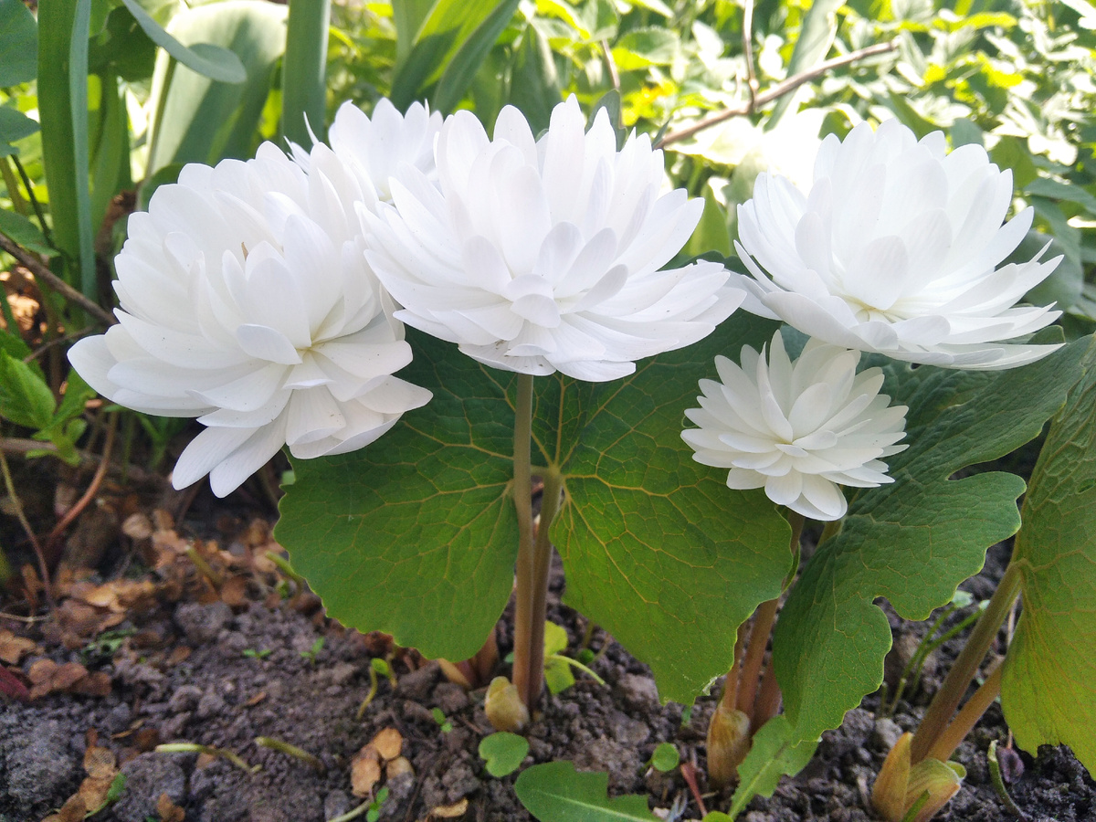 Это растения, которые впервые зацвели минувшим летом и оказались именно такими, как хотелось и мечталось. Во-первых, сангвинария канадская махровая - нереальная красотка, я о ней уже писала. Тюльпан 'Хьюс тен Бош' - представитель моей любимой группы бахромчатых сортов. И цвет очень красивый и нежный. Правда, когда цветки только начали раскрываться, я ощутила разочарование, потому что они выглядели бледно и невнятно. Зато потом внутренние лепестки стали буквально на глазах покрываться румянцем и розоветь! А я эти изменения фотографировала - вот, листайте галерею. Левизия котиледон считается капризным растением, я за неё тревожилась. А она не только пережила зиму, но и зацвела! Смотрите, какие у неё интересные цветочки в полосочку. Отцветшие головки я не срезала в надежде, что будет самосев. Очень хочу её размножить. А ещё больше хочу приобрести левизии других расцветок. Ландыш многоцветковый мне ни разу не удалось красиво сфотографировать, в реальности он выглядит лучше. А многоц