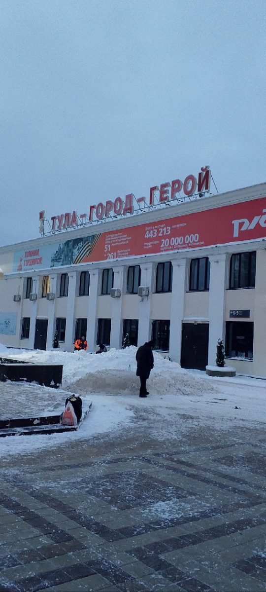Каждый год 2-3 января я с подругой еду ... не в баню а в какое-нибудь путешествие по бескрайне матушки России. В этом году, выбор пал на Тулу. Почему именно туда ? Легко добраться, интересный город, есть что посмотреть. Хотя по началу я сомневался, что тула меня чем то зацепит, но оказалось, что Тула очень даже интересный городок, где есть масса достопримечательностей и куда устрамеляются такие же туристы из соседней Москвы откуда всего 2 часа на ласточке а также сосдней курской, орловской, воронежской, рязанской и калужской области. Первое, что встречает каждого туриста это вокзал. На нем красуется надпись. Тула - город герой. Тула - "злой город". Его ни разу не брал неприятель. Тула- южный аванпост столицы. Тула - оружейная столица РФ ( хотя Ижевск может поспорить). В центре Тулы находится оружейный завод, основанный Петром 1. Завод этот, формально находится на острове, сразу за Кремлем и в случае нападения неприятеля, и взятия центра города, завод по задумке должен был быть пол