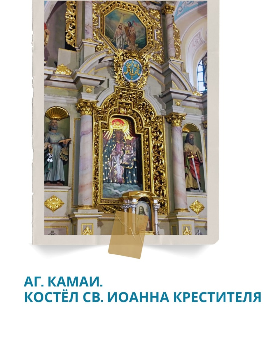 В интерьере Камайского храма особо выделяется главный алтарь, датируемый второй половиной XVIII века. Этот двухъярусный алтарь украшен коринфскими колоннами, придающими ему величественный вид. В первом ярусе в нишах расположены деревянные статуи святых Петра и Павла (начало XVIII века), напоминая о важности апостольской преемственности. Особое место в алтаре занимает икона Матери Божьей начала XVII века, созданная, вероятно, в Кракове около 1610 года. Эта икона почитается верующими как чудотворная, её изображение дарит надежду и утешение. На втором ярусе алтаря изображено живописное Крещение Господне — важный праздник, символизирующий начало служения Иисуса Христа и Его явление как Сына Божьего. Эта икона и сам алтарь — не только произведения искусства, но и священные символы, объединяющие верующих в их духовной жизни и чуткости к святыням. Фото 2: сайт телеканала СТВ #поставыбудьсчастливздесь #религиозныйтуризм #историкокультурныйтуризм #камаи
