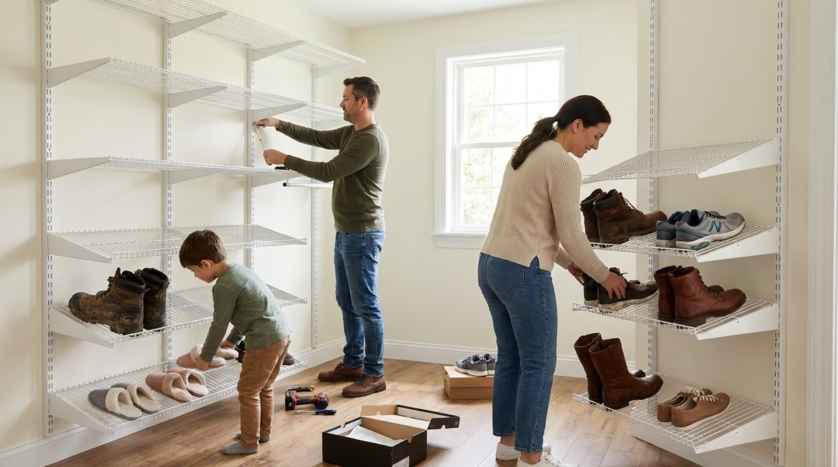 Полки для обуви без хаоса: как навести порядок в прихожей большой семьи