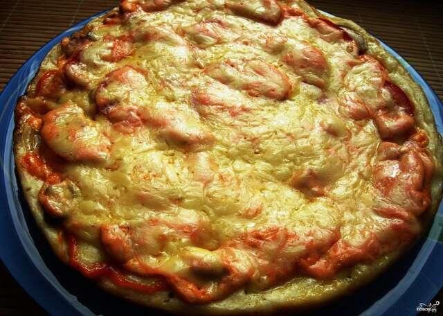 Выпекается пицца на сковороде примерно 10 минут (проверяйте готовность теста зубочисткой).