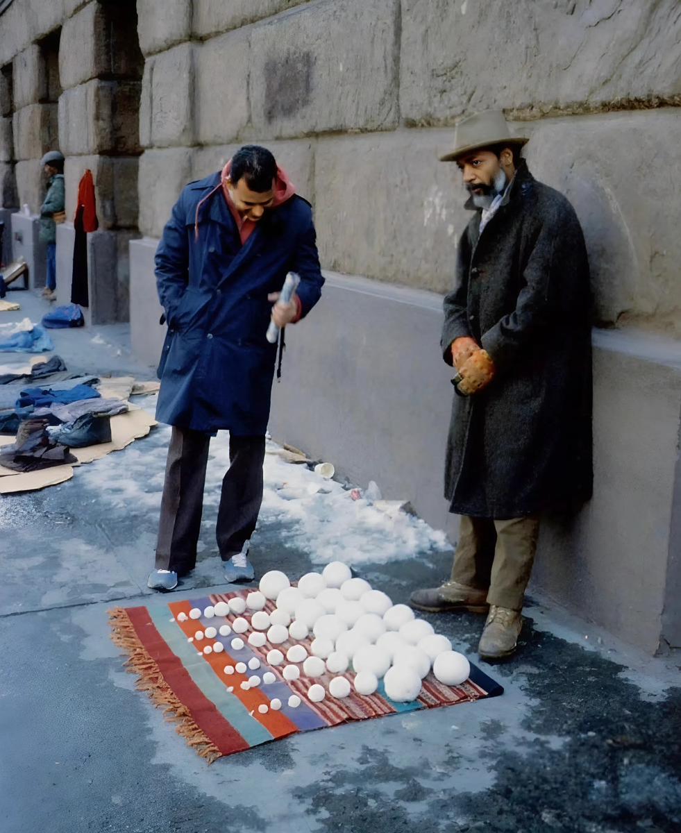 Привет, новоприбывшие в наш причудливый мир культуры - и её отсутствия! А старожилам - отдельное приветствие и благодарность за то, что остаётесь с нами 😄 А теперь к новостям: американский постмодернист Дэвид Хаммонс (David Hammons) устроил необычную акцию - продаёт снежки разных размеров прямо на улице Нью-Йорка. ++++++++++++ Поддержите канал подпиской, если вам не трудно. Заранее благодарна! ➦ https://vk.com/club231957380