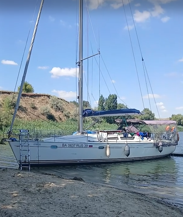 Под водой у 40 футовой яхты фальшкиль с осадкой 2.1 метра. А стоит яхта как моторная лодка с выходом по трапу на песчаный берег.