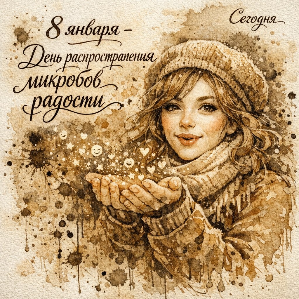 Среди множества необычных праздников есть один особенно светлый и добрый — День распространения микробов радости, который отмечается 8 января. Этот день напоминает нам: положительные эмоции, как и микробы, способны «передаваться» от человека к человеку, создавая цепную реакцию добра. Идея учредить такой необычный праздник пришла в голову Джоан Уайт из штата Нью‑Йорк в 1981 году. Джоан хотела создать день, который бы побуждал людей делиться радостью, улыбаться незнакомцам и совершать маленькие добрые поступки. Почему «микробы»? Потому что радость, подобно микроорганизмам, способна: Нет строгих правил — главное, чтобы ваши действия несли позитив. Вот несколько идей: Научные исследования подтверждают: положительные эмоции: Когда вы делитесь радостью, вы не просто делаете приятно другому — вы меняете мир вокруг себя. Один добрый поступок может вдохновить человека на ответное добро, и так — по цепочке. Вот несколько фраз, которые помогут «заразить» окружающих радостью: День распространения