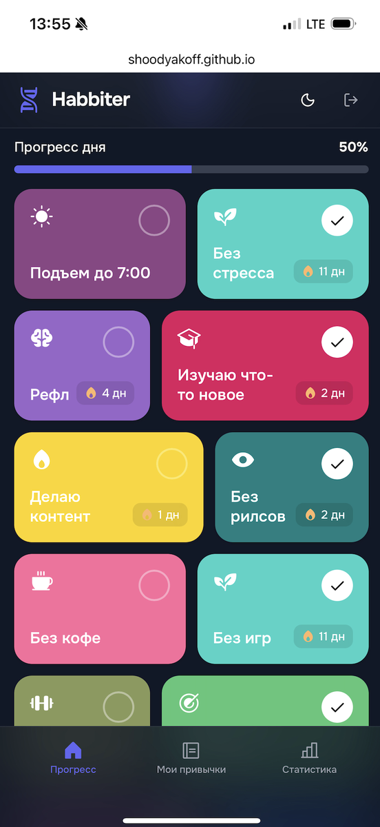 Январь — традиционное время перемен. Мы все изменяем жизнь к лучшему с понедельника или с нового года. Моя цель на этот год оказалась простой, но сложной в исполнении: я решил отказаться от компьютерных игр. В гейминге есть плюсы, но в последнее время для меня это стало источником стресса и инструментом, чтобы потешить эго, а не отдохнуть. Чтобы не сорваться обратно, мне нужно было срочно чем-то занять руки и голову. Так родилась идея: если я хочу внедрить новую рутину, мне нужен инструмент. Я не стал искать трекер привычек в интернете или скачивать сложные платные программы. Я решил написать свое приложение. Обычно, когда люди хотят наладить режим, они ищут "трекер привычек скачать шаблон", чтобы распечатать его на листе А4 и вести дальше. Или пытаются вести трекер привычек в экселе. Я пробовал и то, и другое: Мне нужен был бесплатный трекер привычек, который всегда в кармане, работает быстро и выглядит приятно. Так появился Habbiter. Я написал его за выходные. Это был чистый «вайб-к