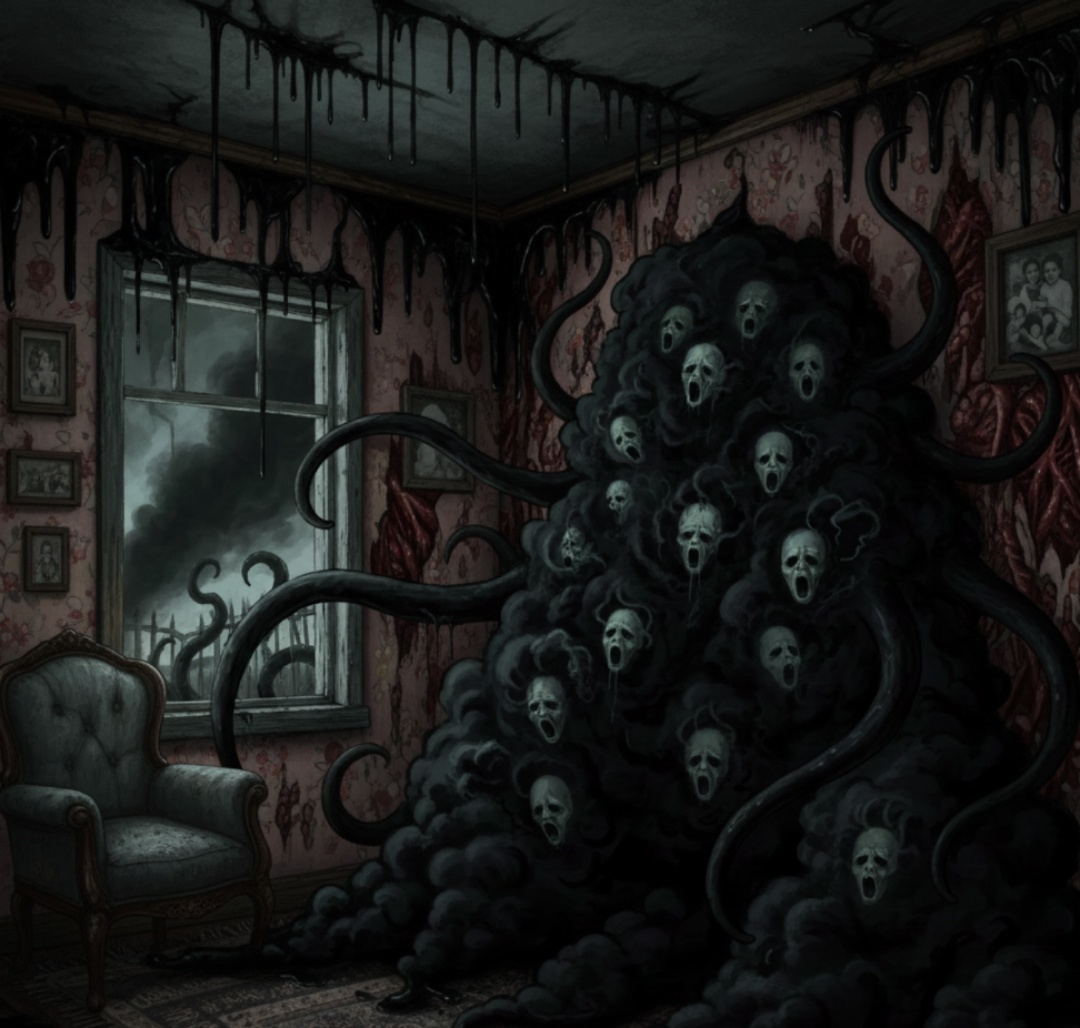 Существо взревело, и сотни глаз уставились на Яна. В ту же секунду дом содрогнулся. Стены начали сжиматься, превращая некогда уютный дом Дины в тесную, живую глотку, которая готовилась проглотить всех троих.