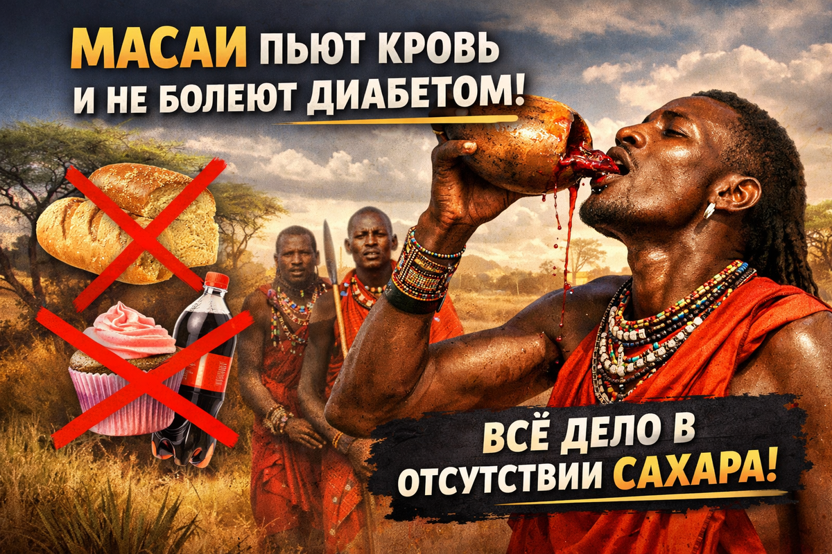 В саваннах Кении и Танзании живут МАСАИ — высокие, стройные воины, которые кажутся вышедшими из другого мира. Они пьют свежую кровь коров, едят мясо и пьют литры молока. Представьте: рацион на 70–80% из жира и белка, почти без овощей и фруктов. А диабета, ожирения и проблем с сахаром в крови у них практически нет. Учёные десятилетиями изучают этот "парадокс масаи" и до сих пор в шоке.