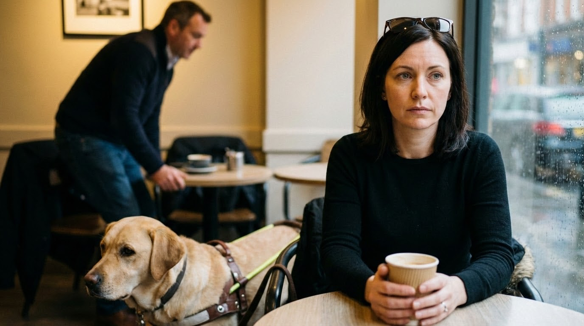 Официант произнёс это так, будто делал одолжение. Глеб оторвался от телефона и посмотрел на соседний столик. Женщина лет тридцати восьми сидела прямо, чуть наклонив голову, будто прислушиваясь к чему-то невидимому. Рядом с её стулом лежала собака – палевый лабрадор с умными карими глазами.