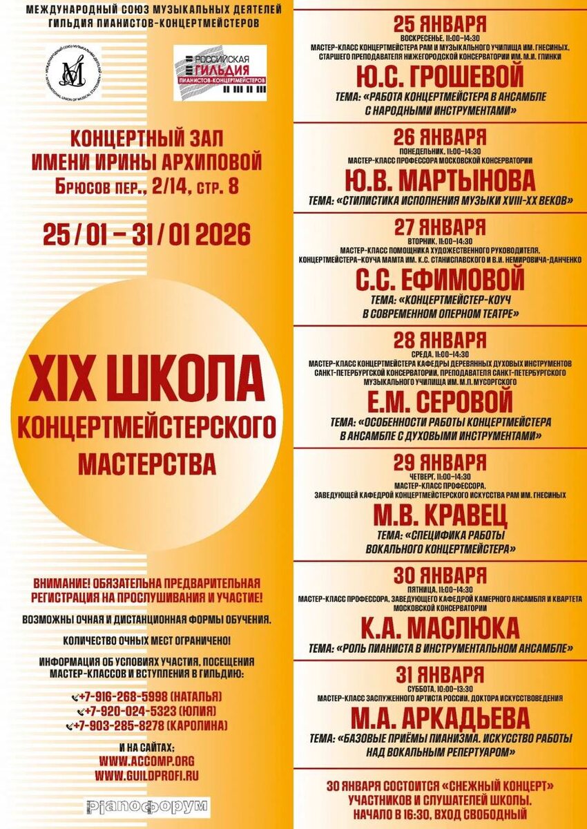 ! Наш партнер - Международный союз музыкальных деятелей и Гильдия пианистов-концертмейстеров объявляет о предстоящей ШКОЛЕ КОНЦЕРТМЕЙСТЕРСКОГО МАСТЕРСТВА! Их курсы повышения квалификации не ограничиваются утренними занятиями, предлагается обширная занятость, включая вечерние концерты. Условия прослушивания и участия в комплексных занятиях смотрите на фото. ✅ Ссылка на заявку: https://forms.gle/H2qiZ5rgu3wjiTfQ6 Ольга Бер - пианистка, педагог, концертмейстер Московской консерватории, генеральный директор Гильдии пианистов-концертмейстеров. @zheolya Региональная Общественная организация Гильдия пианистов-концертмейстеров была создана в декабре 2003 года. Первым Почетным членом Гильдии стал выдающийся пианист и профессор В.Н.Чачава. ❤️Проект «IV Международный музыкальный конкурс-лаборатория Алисы Гицба» проходит при поддержке Президентского фонда культурных инициатив и Правительства Республики Абхазия. #конкурслабораториягицба #КонкурсЛабораторияАлисыГицба #АлисаГицба #Россия #Аб