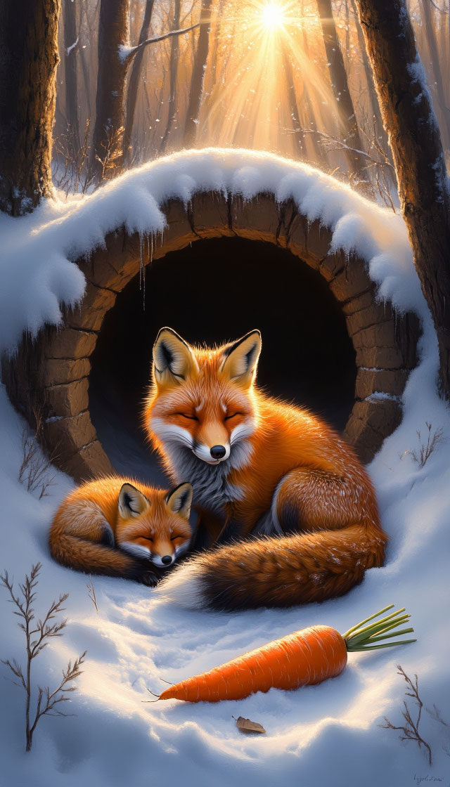 Мгновение выбора растянулось для Алисы в вечность. Она смотрела на припасы, и её острые зубки сами собой поскрипывали в предвкушении пира. Но внутри, где всегда ютился холодный расчёт, теперь бушевало что-то новое, тёплое и неудобное. Она медленно закрыла глаза. По её остренькой, всегда хитро подёргивавшейся мордочке, из-под рыжих ресниц скатились две странные, горячие капли — слёзы. Не от боли, а от той борьбы, что разрывала её пополам. Хитрая улыбка сменилась растерянной гримасой сомнения. И этот внутренний шторм оборвал высокий, чистый, как льдинка, голосок: