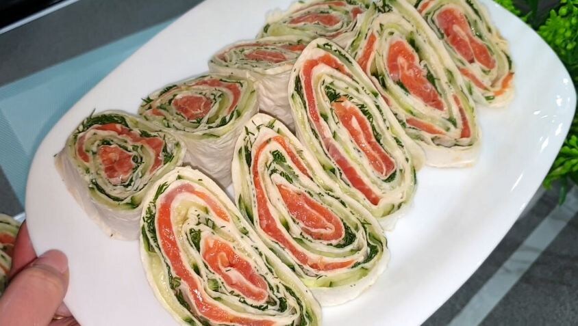 Привет! Сегодня хочу поделиться с вами рецептом одной холодной закуски, которая в моем доме стала настоящим хитом. Она улетает со стола так быстро, что я уже привыкла делать её с запасом. Речь идет о рулете из лаваша с красной рыбой. Готовится он элементарно, выглядит очень нарядно в разрезе, а сочетание нежной рыбы, свежего огурца и укропа нравится абсолютно всем — от детей до взрослых. Это мой спасательный круг, когда нужно быстро собрать что-то вкусное к приходу гостей или сделать сытный перекус. Я беру два тонких армянских лаваша общим весом около 200 граммов. Важно, чтобы они были свежими и мягкими, иначе при скручивании могут поломаться. Расстилаю первый лаваш на столе и равномерно, но без фанатизма, смазываю его майонезом. У меня уходит 2-3 столовые ложки на оба лаваша. Задача — сделать лаваш сочным, но не мокрым, чтобы он не размок. Пока основа отдыхает, готовлю начинку: Огурец. Один большой свежий огурец я нарезаю с помощью овощечистки на длинные, почти прозрачные ленты. Самые