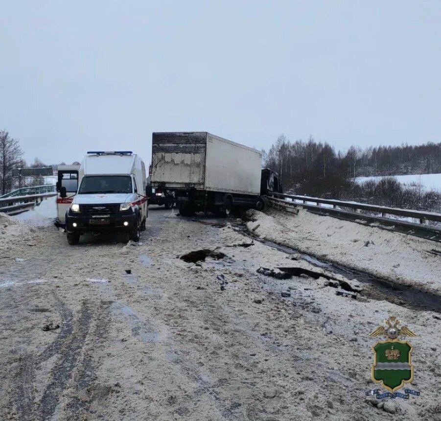 Вероятной причиной стало столкновение легкового автомобиля Ford с грузовиком Mercedes-Benz после заноса и выезда Ford на встречную полосу.