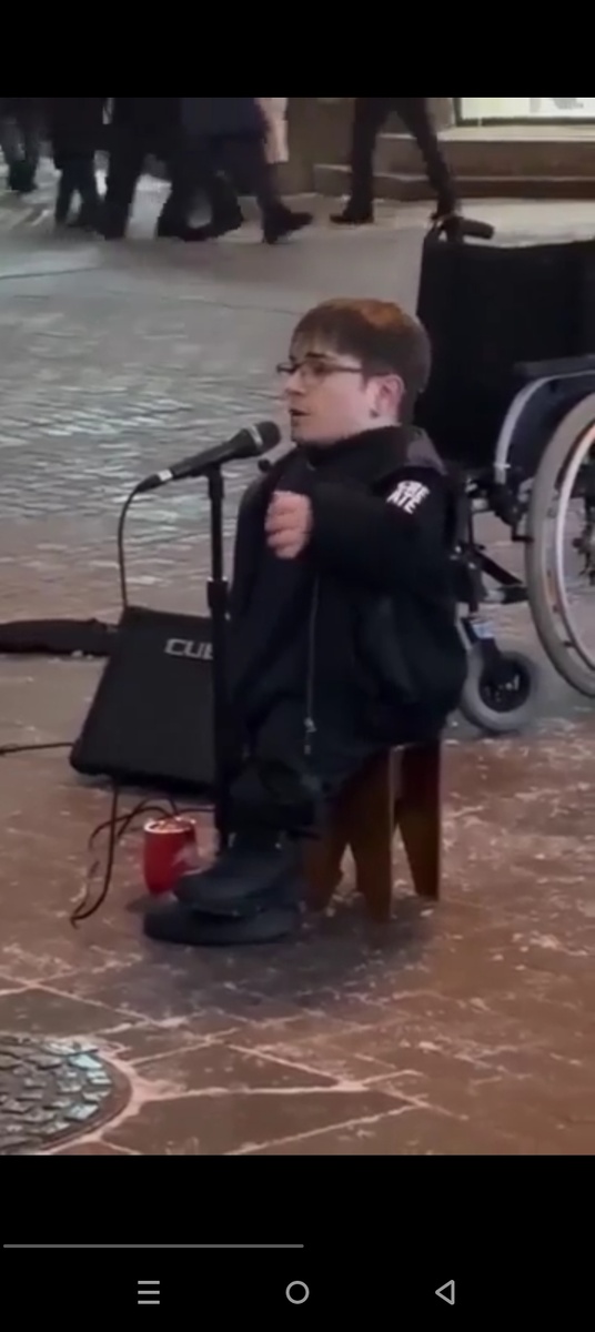 А на улице поёт не из-за нищеты, а ради вкуса от аплодисментов публики, который он испытал в детстве. Рядом с ним нет ни шляпы, ни коробки для пожертвований. Так что, для себя поёт.