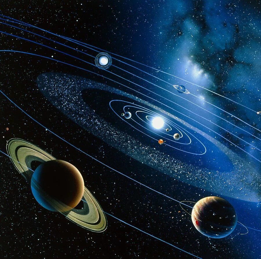 Если двигаться дальше, за Нептуном нас встречает Пояс Койпера — область ледяных тел и карликовых планет. Орбиты некоторых объектов (например, Седны) слишком вытянуты, их перигелий очень далёк от Солнца, а апогелий — ещё дальше. Учёные заметили закономерность: эти транснептуновые объекты слегка смещены в одном направлении. Некоторые считают, что это сигнал о существовании таинственной «девятой планеты» — массивного тела, скрытого от нас, которое стабилизирует орбиты.