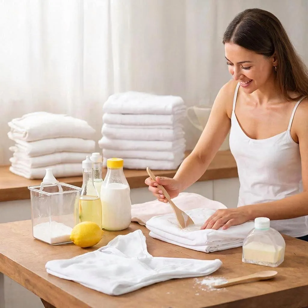 Белая одежда всегда выглядит элегантно и свежо, но со временем она может потерять первоначальную белизну. Пятна, желтизна и серость становятся настоящей проблемой, заставляющей задуматься о покупке новой вещи. Однако существует множество способов восстановить белый цвет ваших любимых предметов гардероба. Мы поделимся секретами бережной стирки белой одежды и дадим полезные советы по возвращению ей первоначального вида. Прежде чем приступить к восстановлению цвета, давайте разберемся, почему белая одежда тускнеет: - Частота носки и неправильное хранение приводят к пожелтению волокон ткани. - Загрязнители воздуха, табачный дым и пыль оседают на ткани, придавая ей серый оттенок. - Низкое качество стирального порошка и неправильная дозировка моющего средства способствуют образованию разводов и пятен. - Использование горячей воды вызывает образование микротрещин в волокнах ткани, куда попадают загрязнения. Правильно подготовленная одежда значительно облегчит дальнейший процесс стирки и повы