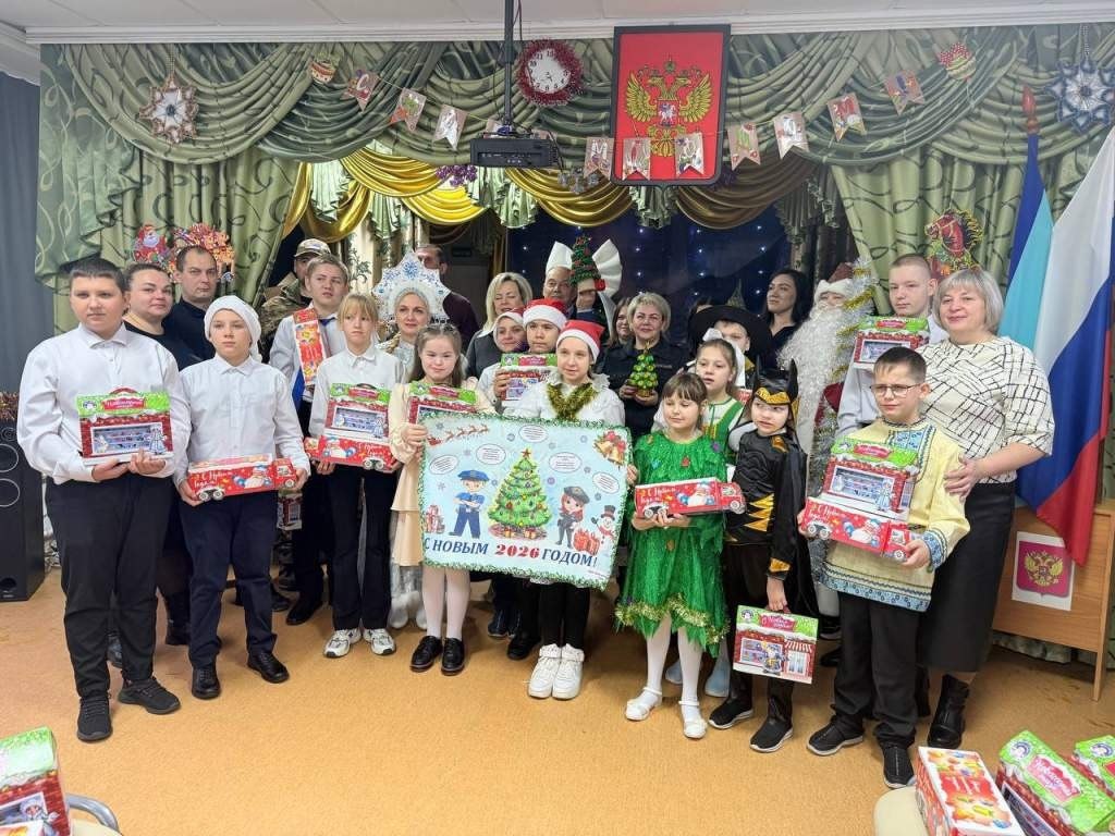 Стражи порядка приняли участие в праздничной программе: помогали проводить игры, слушали стихи детей и вместе с Дедом Морозом и Снегурочкой вручили каждому ребёнку сладкие подарки. В УМВД отметили, что такие визиты и поддержка интерната стали доброй ежегодной традицией. Фото: Полиция Курской области. Телекомпания «ТАКТ» в Max