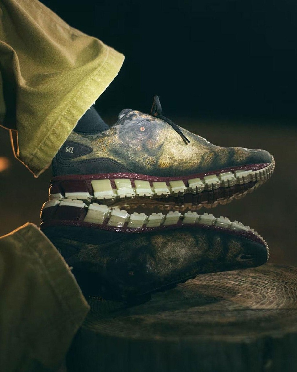 🦖 Потёртая текстура, природные оттенки и ощущение доисторического объекта, найденного где-то в лесу. При этом силуэт остаётся узнаваемым и верным ДНК ASICS. Эксперимент балансирующий между беговой моделью и арт-объектом.