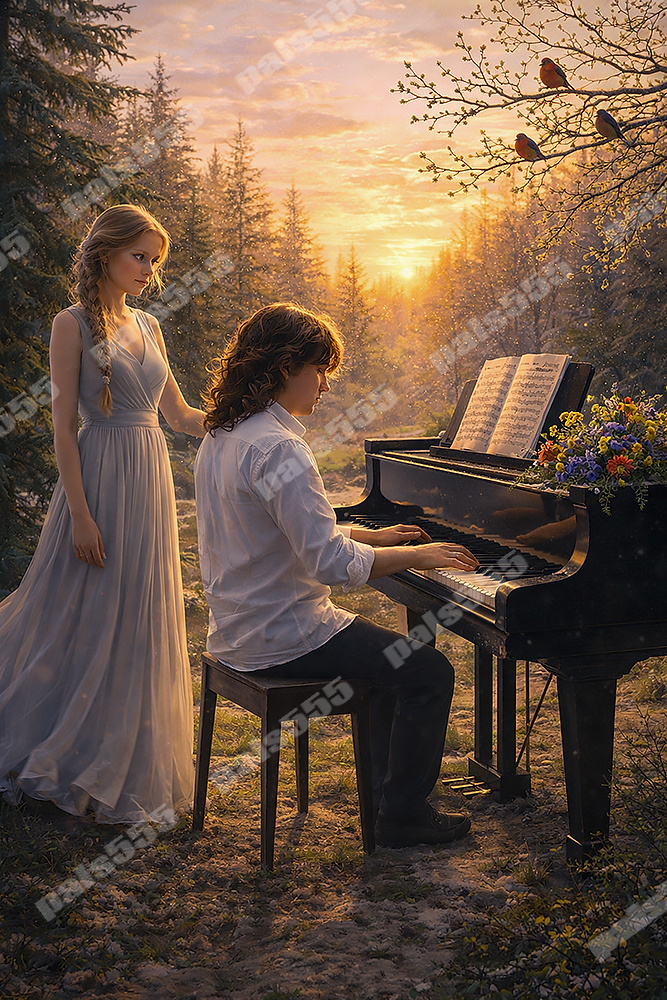 На ветках набухли почки, тёмные, живые, готовые вот-вот раскрыться. Между ними сидят птицы — не прячутся, не молчат, а внимательно встречают рассвет. Свет ещё прохладный, но в нём нет зимней строгости: он мягкий, обещающий.