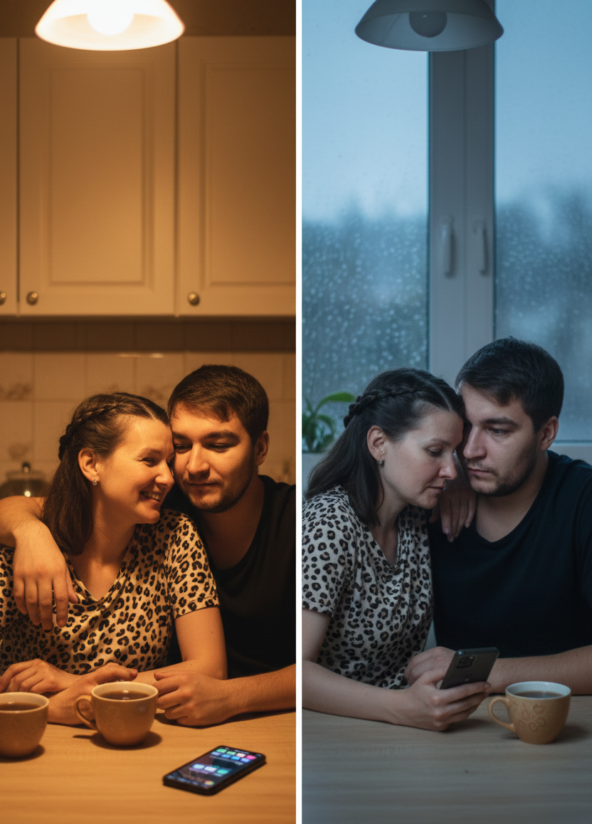 Последние недели она спит на самом краю кровати. Подальше от меня. Если я пытаюсь обнять — напрягается. Не отталкивает, нет. Просто лежит как доска. Через минуту я убираю руку сам.