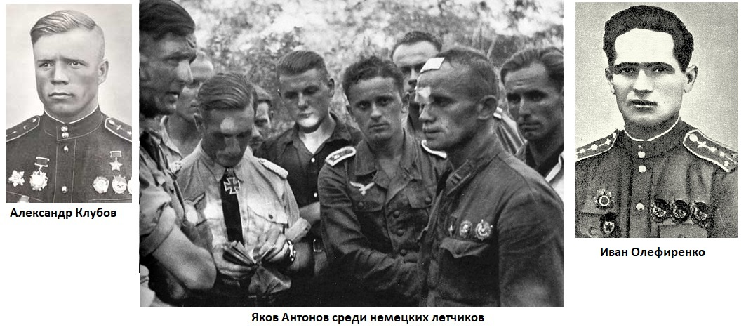 Считалось, что майор Антонов погиб, но позже выяснилось, что он попал в плен. Антонов был лихой вояка, участвовал еще в финской, награжден орденами Ленина и Красного Знамени. Дальнейшая судьба его Клубову так и осталась неизвестной. Антонова захватили после приземления на парашюте, причем он сперва расстрелял все патроны из своего пистолета. Может случайно, а может и специально, ни в кого из окруживших его немецких летчиков он не попал, но и себе последнюю пулю в лоб пускать не стал. До рукопашной дело не дошло, а немцы по нему и не стреляли, не хотели убивать, просто окружили и считали его выстрелы. Антонова захватили, таким образом, не без боя и отнеслись к нему с уважением, которое заслуживал достойный противник. К тому же немцев впечатлили его награды и мастерство, которое он продемонстрировал в своем последнем бою. Почему он вылетел на задание в тот день с документами и наградами, включая звезду Героя, тоже так и осталось непонятным. Уже после войны всплыли фотографии из личного архива одного из самых результативных экспертов Люфтваффе, Гюнтера Ралля. На этих фотографиях майор Антонов запечатлен с двумя пластырями на лице. Значит, ему уже оказали медицинскую помощь. Он стоит в окружении немецких летчиков и ведет с ними, по всей видимости, профессиональный разговор через переводчика. Немцы смотрят на советского аса с интересом и уважением, как на опытного и умелого коллегу по профессии. На лицах у летчиков нет злобы и ненависти, у немцев даже видно что-то вроде сочувствия. Вообще у всех летчиков похожие лица, как будто общая любимая профессия наложила на них свой отпечаток. Сам Антонов на снимке выглядит печальным, что не удивительно, но не подавленным, держится со спокойствием и достоинством. У него на груди награды. То, что их не отняли, является признаком большого уважения, но расположены они почему-то в неправильном порядке. Возможно, награды сперва забрали, а потом вернули для снимка фронтового корреспондента. Захватить в плен живого Героя Советского Союза – это была серьезная удача. Немцы поставили Антонова на довольствие, несколько дней он провел «в гостях» в той части Люфтваффе, летчик которой его сбил. Его особо не допрашивали и даже не держали взаперти, потом переправили в лагерь военнопленных под Моздоком, оттуда в Мариуполь. И из Мариуполя он, по некоторым данным, то ли совершил побег, то ли его освободили местные подпольщики, имевшие связь с разведотделом Черноморского флота. Дальнейшая его судьба выглядит совсем туманной. По одной из версий он скрывался в оккупированном немцами городе Ейске, что на Азовском море, и там погиб в перестрелке с полицаями, по другой версии пытался бежать при переводе в Мариуполь, и тогда был застрелен конвоирами. Его судьба в итоге так и осталась невыясненной.