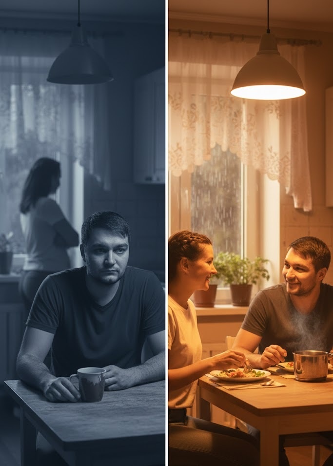 Дома я молчал. Спросил про день — она про отчёты. Сделал чай. Всё как обычно.