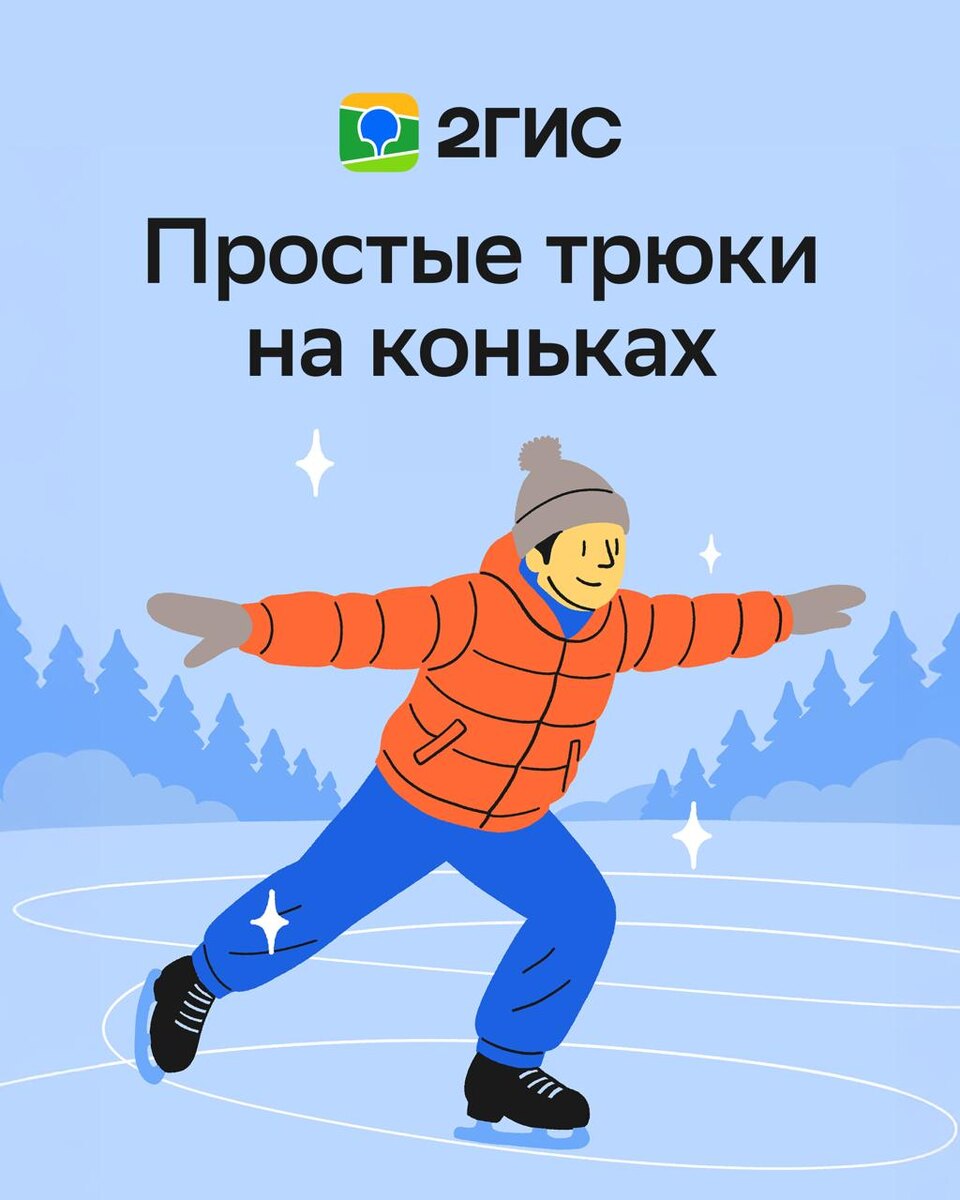 ! И освоить лёд можно эффектно. В карточках собрали 5 трюков, с которых легко начать. Ищите ближайший каток в 2ГИС, берите варежки, термос с чаем и вперёд кататься. А мы будем болеть за вас с трибун (в комментариях) 💚