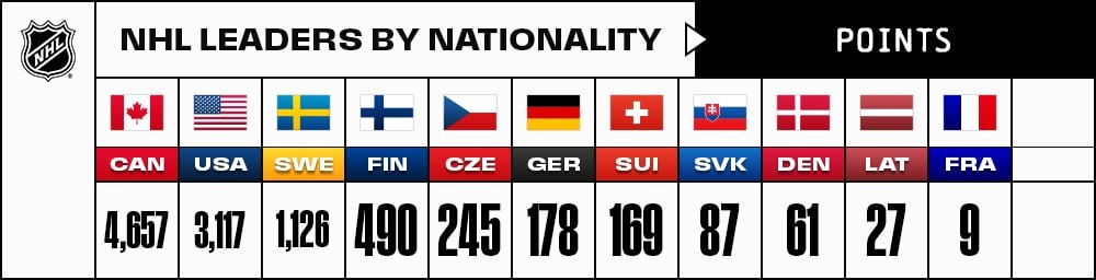 👍 Игроки из трёх стран набрали не менее 1000 очков в сумме в сезоне 2025-26. Данные до прошедшего игрового дня. 🇷🇺 856 очков у представителей РФ, которых заботливые составители инфографики не включили в неё. 🦈 Маклин Селебрини сравнялся с Джонатаном Чичу (2005-06) и Робом Гудро (1992-93) по длине игр с набранными очками — по 12. Это третий результат в истории франшизы. Больше было только у Микаэля Грэнлунда (13 в сезоне 2023-24) и Эрика Карлссона (14 в сезоне 2022-23). Также Селебрини добрался до отметки в 80 ассистов, на это потребовалось 113 игр. Среди действующих игроков быстрее были только: Кейл Макар (110), Коннор Макдэвид (106), Мэтью Барзал (106 — внезапно), Сидни Кросби (97). ⭐️ Мэтт Дюшейн стал вторым игроком с драфта 2009 года, набравшим 900 очков (за 1157 игр). Впереди только Джон Таварес (1152 очка за 1226 встреч). 40 очков осталось Райану О`Райлли до этой отметки. Таварес ушёл первым на том драфте, Дюшейн третьим, РОР — 33-м, во втором раунде. Второй номер того дра