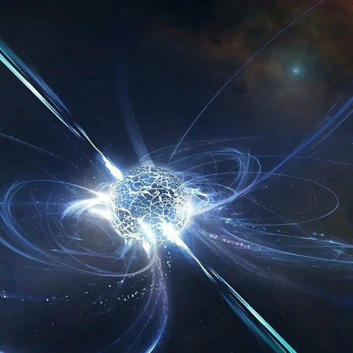 Если белые карлики — это остатки «средних» звёзд, нейтронные звёзды — реликты сверхмассивных. Когда звезда с массой в 8–20 раз больше Солнца умирает, её ядро сжимается в невероятно плотный объект, где чайная ложка вещества весит миллиард тонн. Ядро нейтронной звезды — это сплошное море нейтронов. Внешние слои иногда состоят из ионов и электронов, но внутри — почти чистая нейтронная материя. Давление, удерживающее звезду, создаётся квантовым вырождением нейтронов, а ротации и магнитные поля поражают воображение: нейтронные звёзды могут вращаться со скоростью сотен оборотов в секунду и иметь магнитные поля в триллионы раз сильнее земного. Пульсары и магнетары