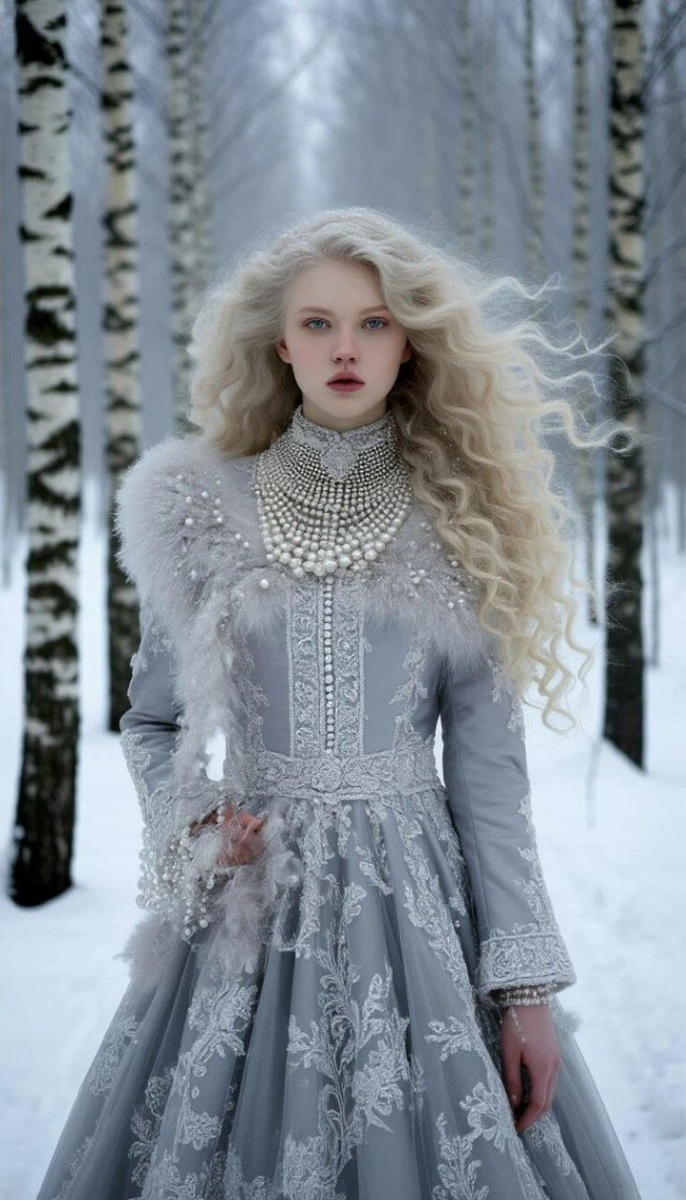 "Зима". Генерация песни. Основной промт к серии виартов " Зима"- Широкоугольное искажение изображения "рыбий глаз", двойная экспозиция.Раннее утро, берёзки, фэшн-модель девушка в белой шали с серебристой вышивкой узоров, русский головной убор кокошник,роскошное платье из органзы, стоит у берёзы,на деревенской улице, все в снегу, сугробы, Морфинг: лёд на ветках искрится в снежинки, Dolly zoom на лицо, slow orbit вокруг дерева, пастельно-жемчужный свет рассвета, реализм 8K В этом посте есть большое видео, которое не загрузилось в Дзен. Откройте оригинал поста в телеграме, чтобы его посмотреть