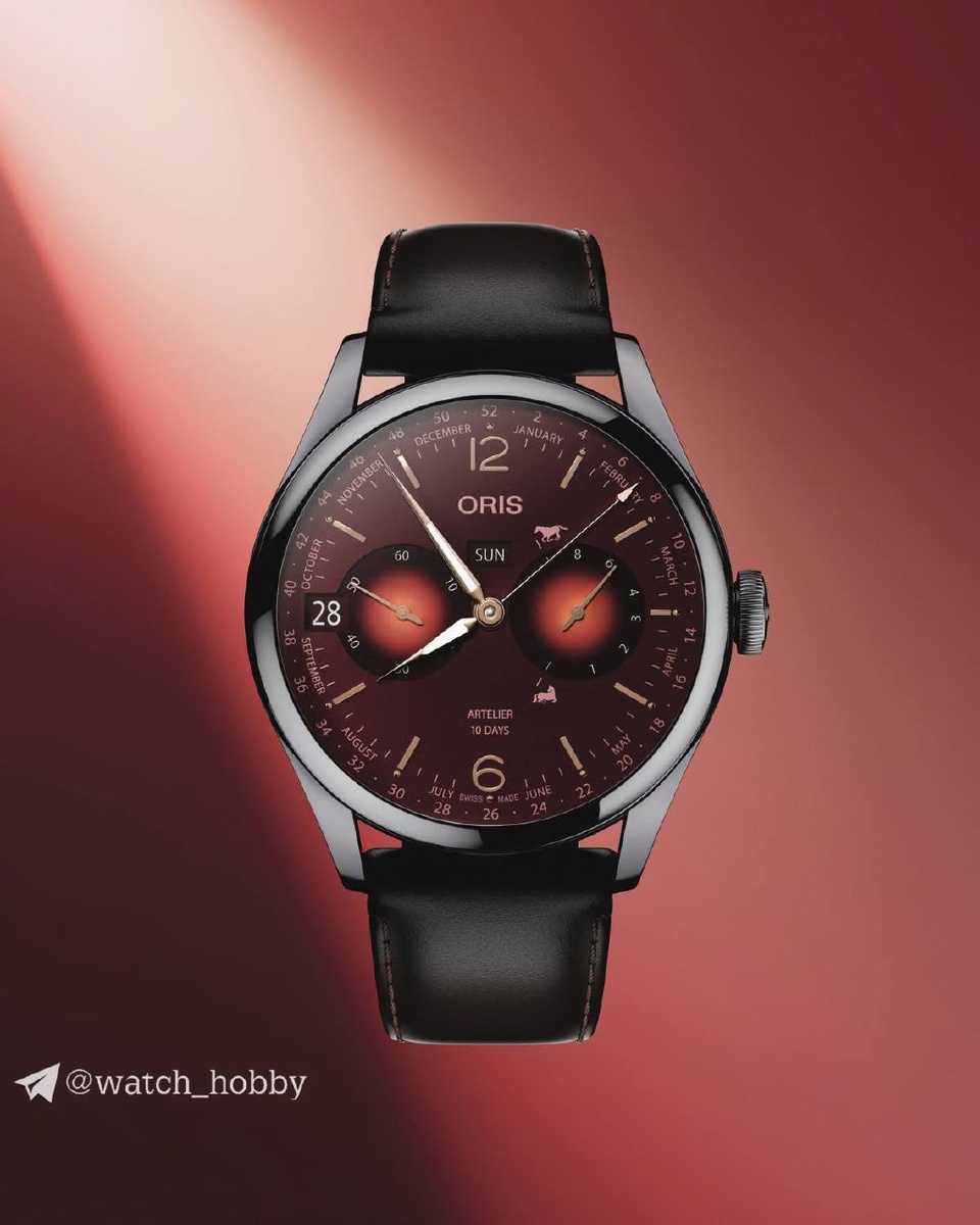 Скачущая или отдыхающая лошадь на циферблате укажет нам оставшийся запас хода. Лимитка, посвященная Году Лошади, выполнена в очень смелых тонах 🐎 Что с характеристиками: - Корпус из стали - Ремешок из кожи - Красный циферблат - Размер корпуса: 43 мм - Сапфировое стекло - Водозащита 50 метров - Дата, день недели, месяц - Индикатор запаса хода - Механический калибр Oris Calibre 113 с запасом хода в 240 часов Циферблат сделан в малиново-бордовом градиенте, на нем расположились индексы и стрелки в золотом оттенке. Дата находится на «9 часах», индикация дня недели на «12 часах», сразу под логотипом, а на текущий месяц укажет аккуратная стрелка с красным наконечником. Механизм очень красив, «ручка» на 240 часов. Его можно разглядеть сквозь прозрачную крышку. Лимит: 88 экземпляров. Стоимость: 8.000 долларов или 750.000 рублей 💰, ориентировочно. Подпишись и делись мнением!
