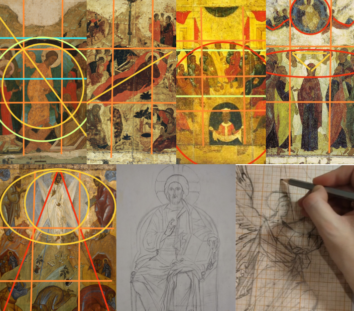 Рекомендации, изложенные ниже, применимы как для построения академической фигуры, так и для иконописной фигуры. Оба вида рисунка опираются на пропорции при построении, несмотря на то, что вид перспективного сокращения отличается. У академического рисунка это линейная прямая перспектива, у иконописного рисунка – обратная перспектива. Так как, изначально я получила академическое художественное образование и немного преподавала в вузе на факультете изобразительных искусств и народных ремесел (МГОУ), то навык построения при помощи линейной перспективы слишком глубоко засел в мое сознание и я применяю его машинально. Знаю что, существует мнение, якобы иконописцу мешают знания академического рисунка. Но изучая творчество греческих (византийских) иконописцев, я прихожу к выводу, что древние очень хорошо владели знаниями об анатомии, цветоведении, пропорциях и др. все те знания, что сейчас находится в доступе, но ими пренебрегают новички, а зря. Думаю, что композиция и рисунок первичны, и
