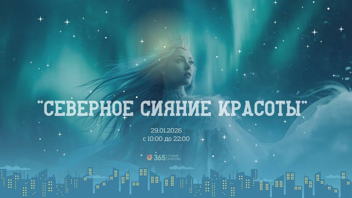 💙 Пока за окном — январская стужа, мы готовим для вас настоящее чудо, способное растопить лёд и наполнить вас сиянием. 🗓29 января 2026 года студия 365 превратится в портал в самую волшебную точку на карте — ту, где над головой танцуют переливы Авроры. Мы вдохновились красотой северного сияния — природного феномена, от которого замирает сердце, и создали особый Клиентский день. Это не просто акция, а путешествие в мир скандинавской эстетики, где рождаются покой, гармония и мягкое сияние. 🪄Атмосфера полярного чуда 🔵Декор: мерцающие гирлянды в изумрудных и фиолетовых оттенках, словно вспышки сияния в ночном небе 🔵 Ароматы: чистые, ледяные, хвойные нотки — как воздух ясной арктической ночи 🔵 Звуки: спокойная фоновая музыка и уютная тишина, в которой хочется замедлиться 🧖♀️ Скандинавские ритуалы красоты Мы верим, что истинная красота рождается из заботы, внимания и внутренней гармонии. 🛷 Специальные предложения дня • –20% на все услуги студии • –20% на косметику студии 365 •
