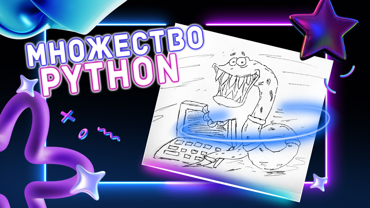 Народ, всем привет. Сегодня мы поговорим про множества (set) в Python, встроенный тип данных, предназначенный для хранения уникальных элементов без определённого порядка. Они часто используются там, где важна проверка принадлежности, удаление дубликатов и выполнение математических операций над наборами данных. Несмотря на простоту, множества являются мощным и эффективным инструментом, который стоит хорошо понимать. Но для новичков они не всегда понятны, поэтому сегодня и погорим про них. Множество может хранить только уникальные и хешируемые объекты. Это означает, что в set нельзя поместить изменяемые типы данных, такие как списки или другие множества, но можно хранить: my_set = {1, 2, 3, "python", (10, 20)} Если попытаться добавить список, возникнет ошибка: my_set = {1, 2, [3, 4]} # TypeError Есть несколько способов создать множество. Например, через фигурные скобки или через функцию set(): numbers = {1, 2, 3, 4} numbers = set([1, 2, 3, 4]) Важно помнить, что пустое множество нельзя с