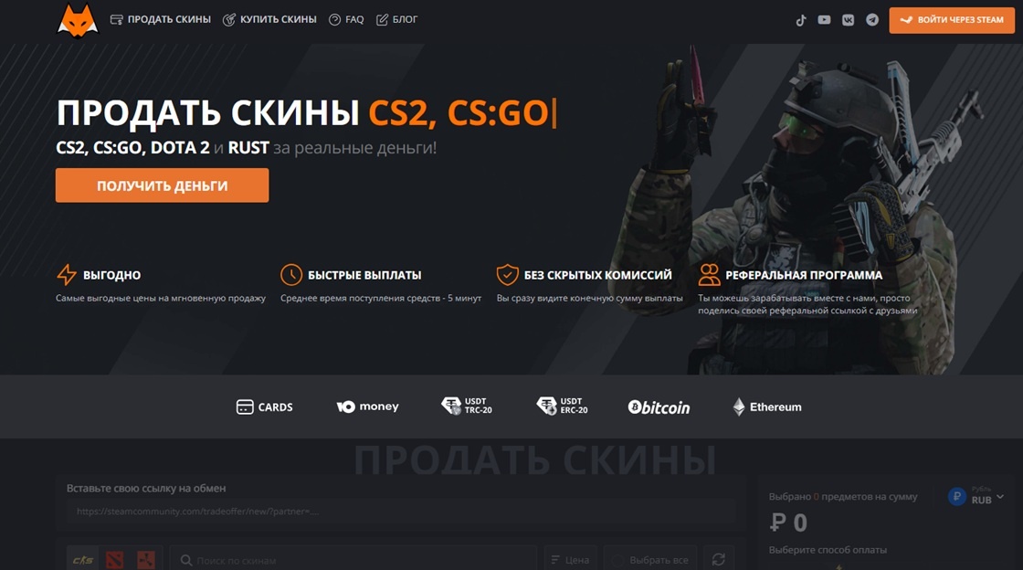 1) Lis-skins. Выгодна продажа и покупка скинов