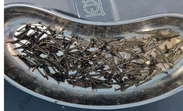 Vaib.uz (Узбекистан. 6 января). Необычную историю спасения рассказали в Самаркандском филиале Республиканского научного центра экстренной медицинской помощи. На днях в приёмное отделение был доставлен 29-летний мужчина с сильными болями в области живота. После проведённой диагностики и лабораторных анализов врачи обнаружили, что в желудочно-кишечном тракте пациента находится большое количество металлических предметов – гвоздей и саморезов. Ситуация требовала немедленного вмешательства.