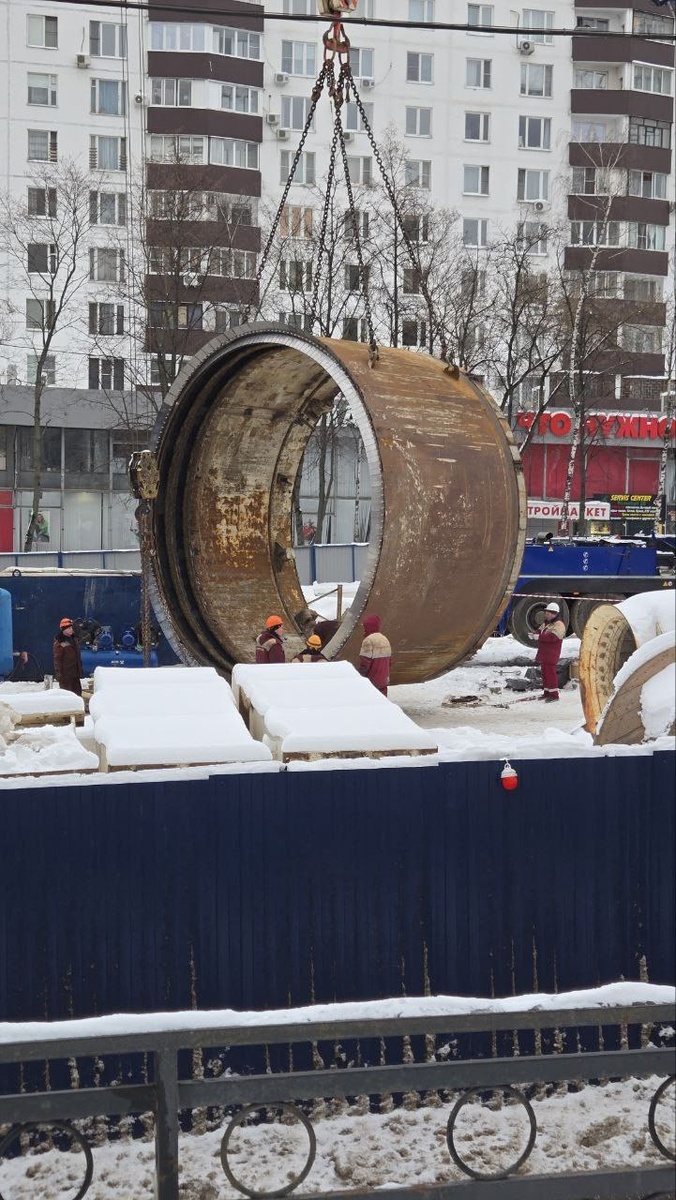 Площадка строительства монтажной щитовой камеры за тупиками «Щелковской» на Уральской улице Продолжается монтаж второго тоннелепроходческого комплекса для проходки правого тоннеля до станции «Гольяново». 📷: Метро в Гольяново Пост ВК