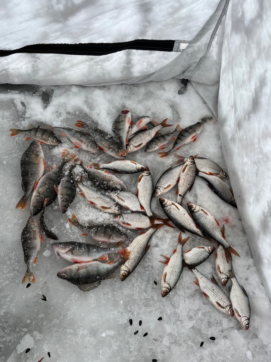 До метели всё поклевывало стабильно, как только раздул ветер и повалил снег - затихло.