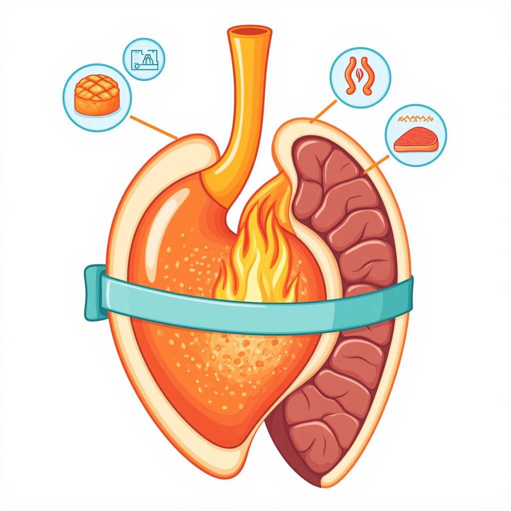 - Что происходит: Сфинктер слабеет или расслабляется не вовремя (часто из-за перерастяжения желудка, жира в области живота, беременности, определённых продуктов).