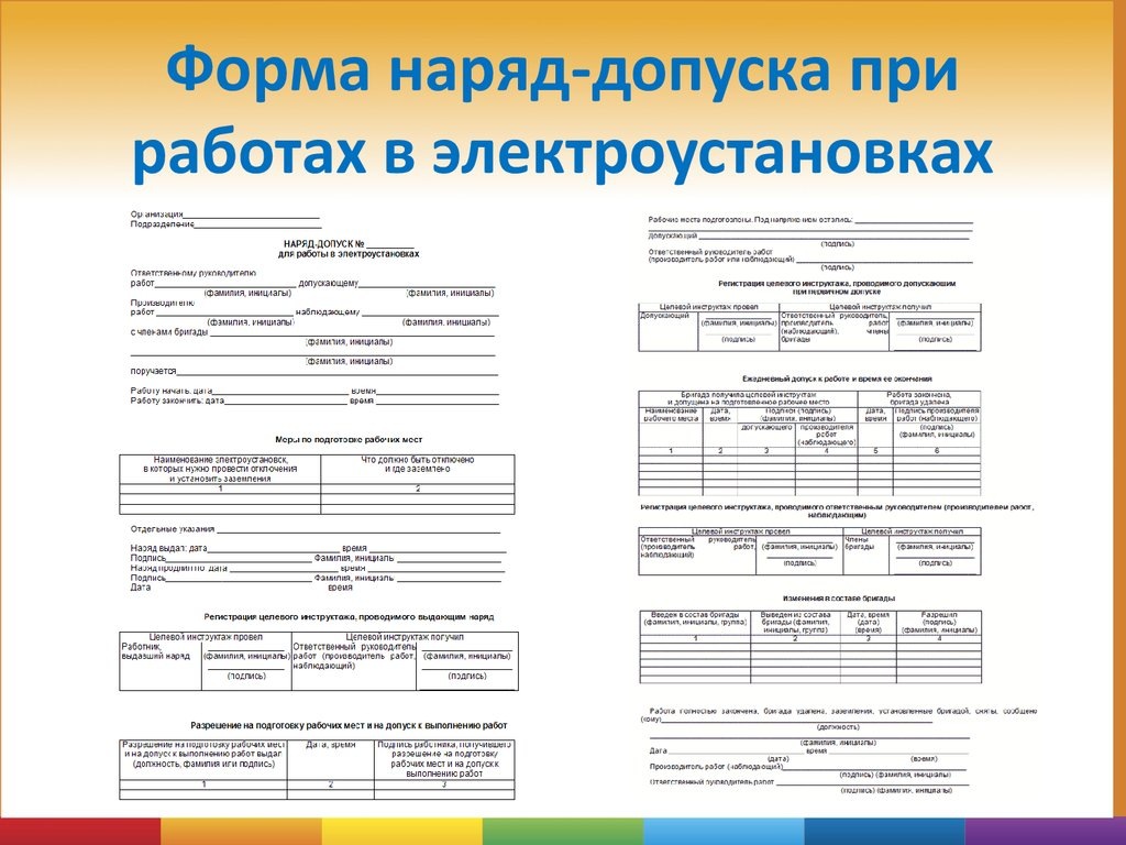 - Кто за всё отвечает — руководитель работ, допускающий, выдающий наряд