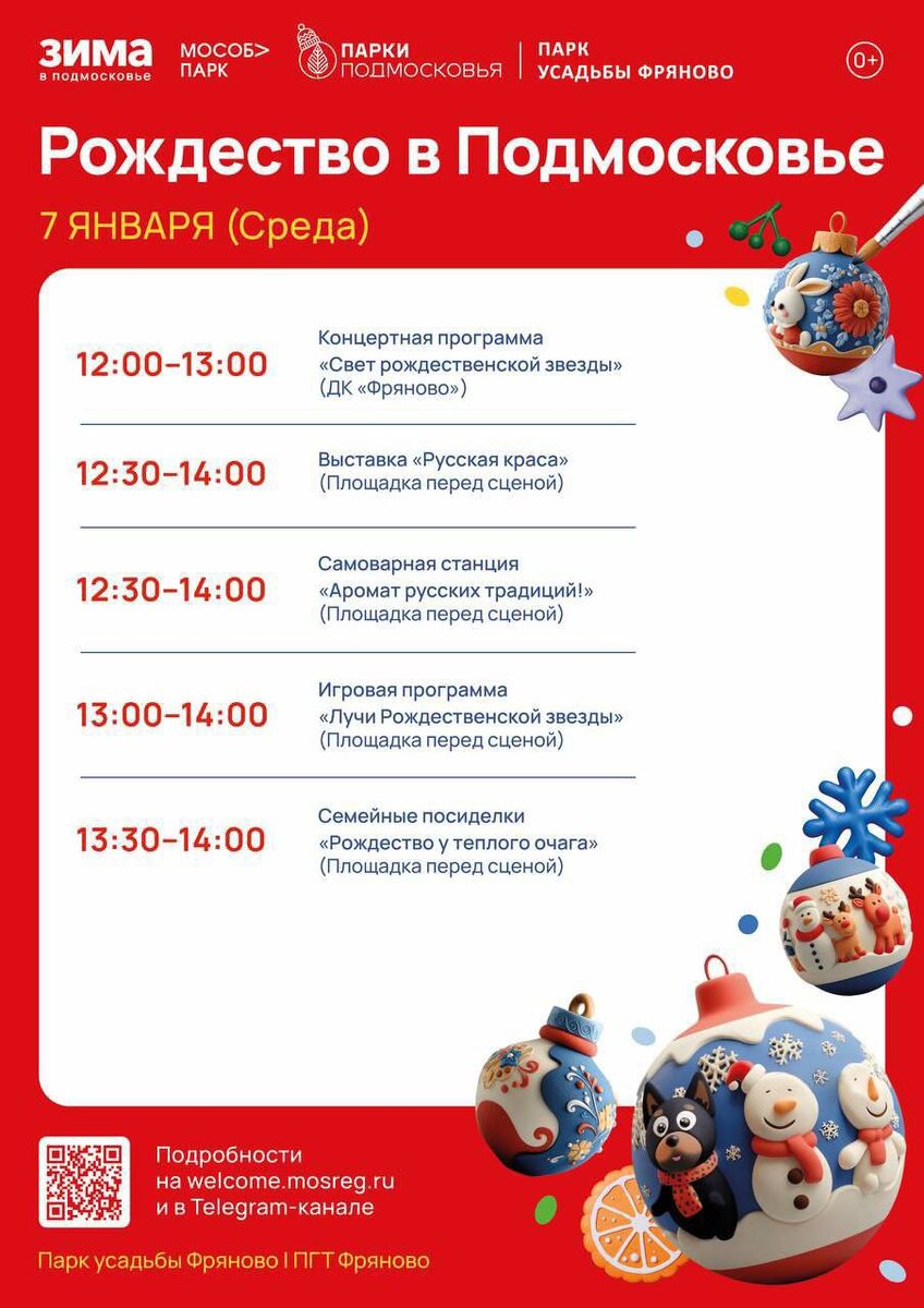 🌟 Уже завтра вас ждут игровые программы, выставка, квест, флешмоб, чайные станции, концерт и многое другое. 📍 Парк усадьбы Фряново | 7 января в 12:00. 📍 Парк «Детский городок» | 7 января в 14:00. Приходите всей семьёй! #зимавподмосковье #культуращёлково
