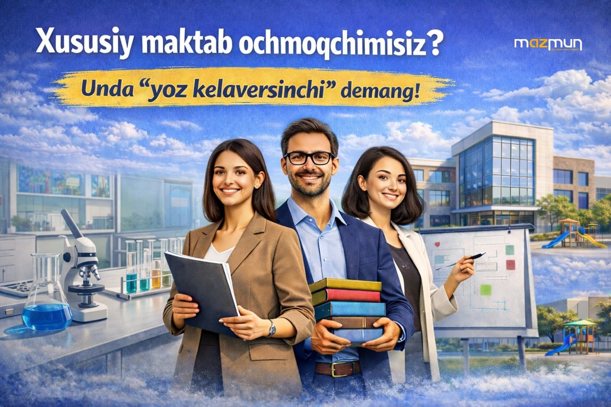 ? “Yoz kelaversinchi!” demang, hoziroq harakatni boshlang! Ko‘pchilik maktab ochishni rejalashtiradi-yu, lekin ishni cho‘zadi: “Yozda boshlaymiz deydi…” Aslida esa yozga qolsangiz ancha kech bo‘lishi mumkin. Chunki yoz - tayyorgarlik emas, qabul va start bosqichi. Ota-onalar nimaga qaraydi? ✅ Bino tayyorligi Jihozlangan xonalar ✅ Maktab konsepsiyasi va yo‘nalishlari ✅ O‘qitish yondashuvlari va o‘quv dasturi ✅ O‘qituvchilar jamoasi ✅ Eng muhimi - LITSENZIYA Ochig‘i: Ta’miri tugamagan, konsepsiyasi noaniq, ustozlari to‘liq yig‘ilmagan, litsenziyasi chiqmagan maktabga ota-ona bolasini ishonib topshirmaydi. Bularning hammasini “tayyor holat”ga keltirish esa vaqt, aniq reja va tajribani talab qiladi. Agar tajribangiz bo‘lmasa - ko‘p vaqt va ko'p pul yo'qotasiz, xatolar esa keyin qimmatga tushadi. ⭐️ Mazmun jamoasi sizga yordam beradi. O'z xususiy maktabingizni biz bilan xatolarsiz, tizimli, kamroq vaqt va mablag‘ bilan oching. 🛫 Aloqaga chiqing: @mazmunadmin yoki izohda “+” qoldirin