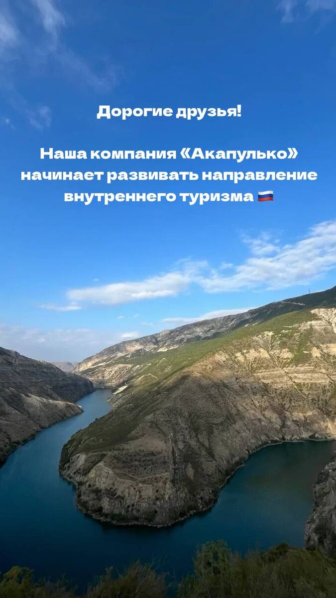 !🎉 Наша компания «Акапулько» начинает развивать направление внутреннего туризма 🇷🇺 Мы являемся ОФИЦИАЛЬНЫМ туроператором отечественных направлений! Наш реестровый номер: РТО 022345 ✏️Мы можем самостоятельно формировать туристический продукт: • продумывать маршрут; • включать в тур перелеты, проживание, экскурсионные программы и трансферы; • а главное — мы несем ответственность за всё путешествие. Для нас это большая гордость! А для вас возможность отправиться в тот самый тур! ♥️Нам важно, чтобы вы не только отдохнули, но и прочувствовали новые эмоции. Именно поэтому мы сознательно выбрали формат индивидуального кураторства! Что это значит? Каждая семья, каждая пара или компания путешествует индивидуально, по программе, которая подбирается под конкретный запрос — никаких больших сборных групп 😍 💰Стоимость таких туров «под ключ» при этом остается очень приятной — мы организуем путешествие без лишних для вас переплат ❤️ На старте мы готовы предложить вам базовые направления