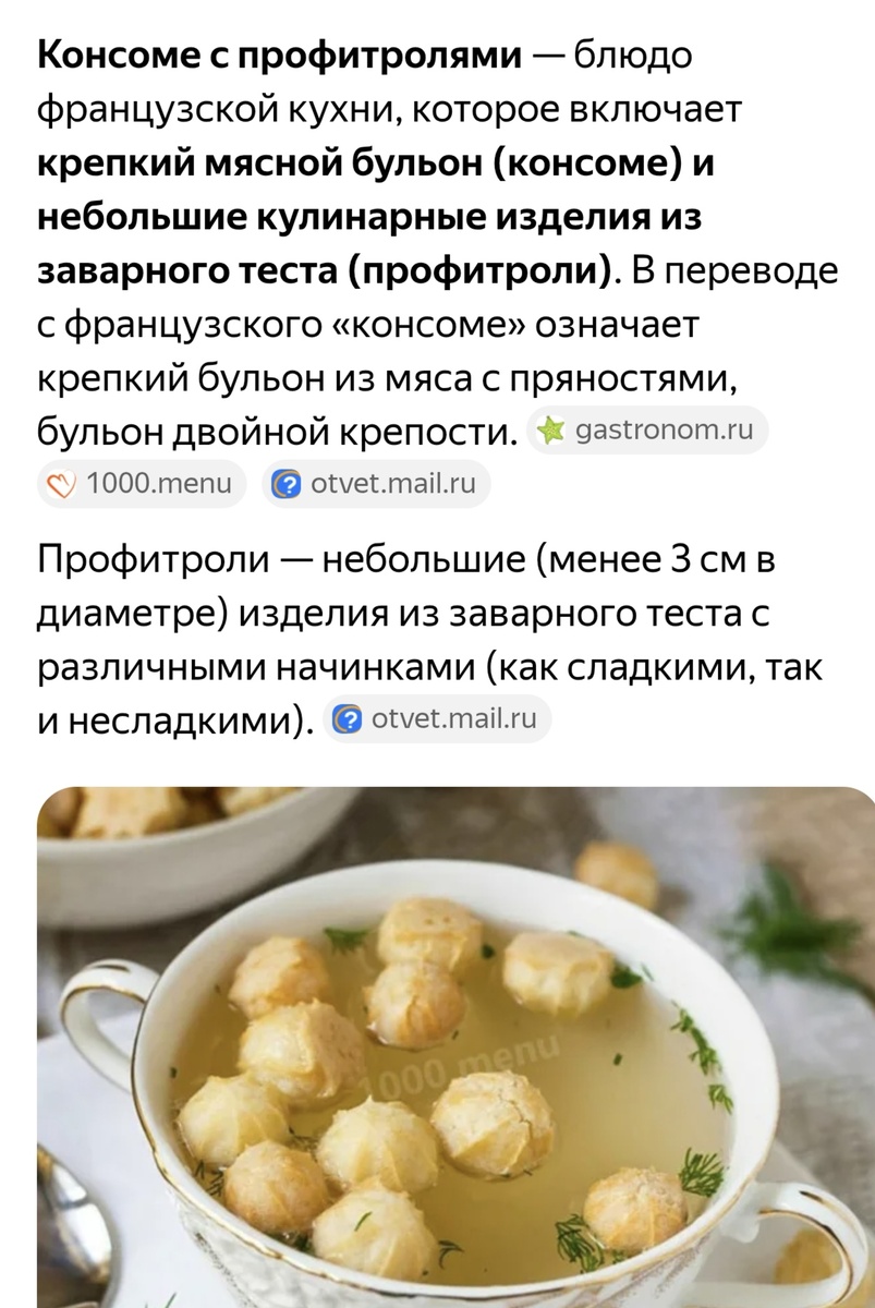 С профитролями знакома с детства , а вот консоме - ? Решила восполнить пробелы в образовании 😂.