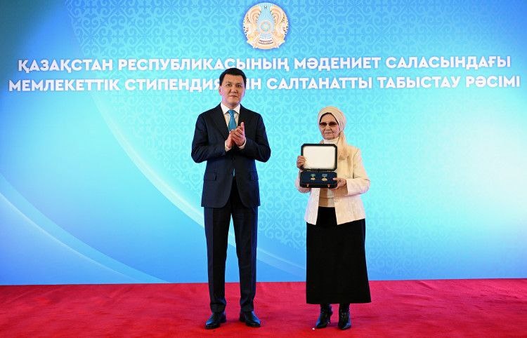 Государственный советник Ерлан Карин в Алматы от имени Президента Республики Казахстан передал родственникам Бауыржана Момышулы Зейнеп Ахметовой и Ержану Момышулы знак особого отличия – Золотую звезду и орден «Отан».